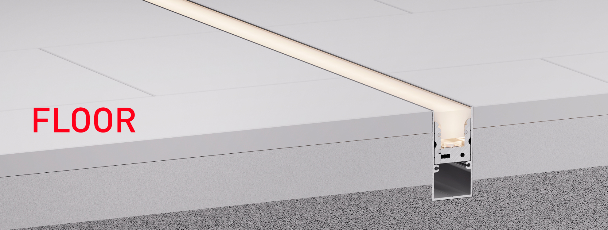 Профили FLOOR предназначены для создания линий света, встроенных в пол, наружные стены и фасады зданий. Предусмотрена возможность герметизации до значения IP67.