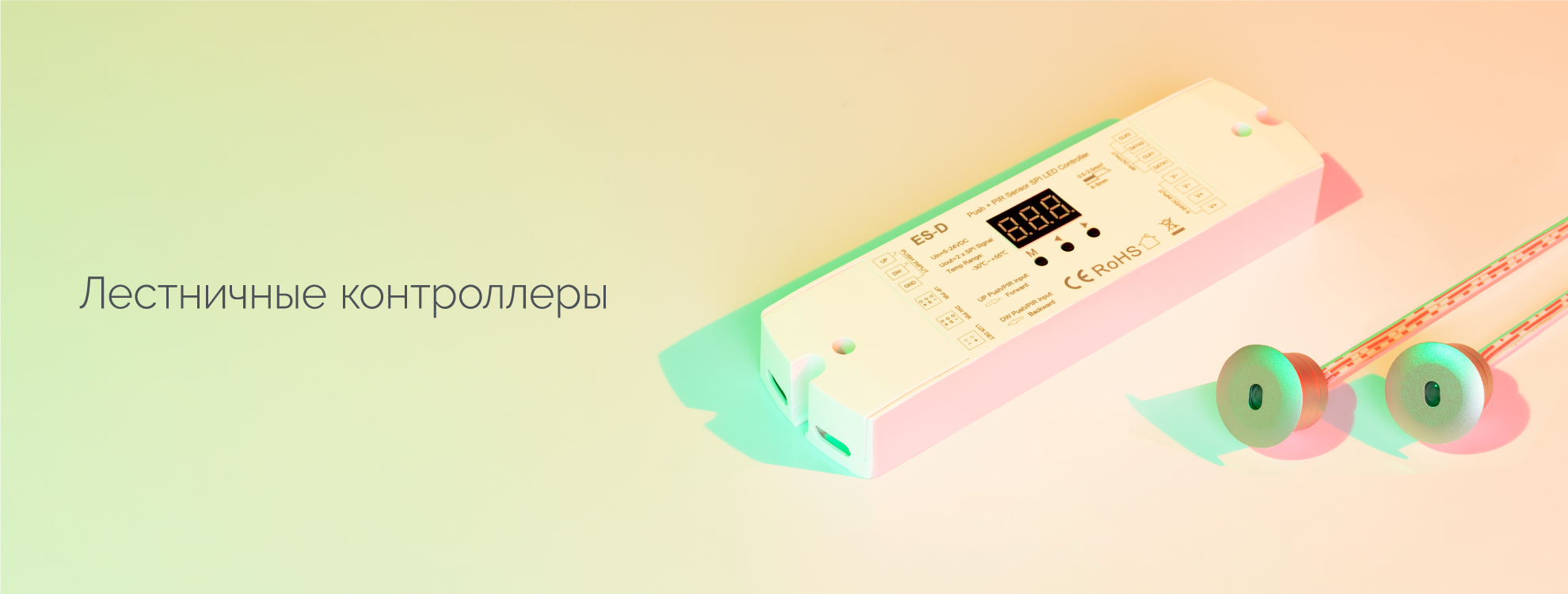 Контроллеры для создания динамической подсветки лестниц. За счет пошагового включения светодиодных лент, установленных в ступени или перила, можно настроить различные динамические эффекты и таким образом превратить лестницу в произведение искусства.