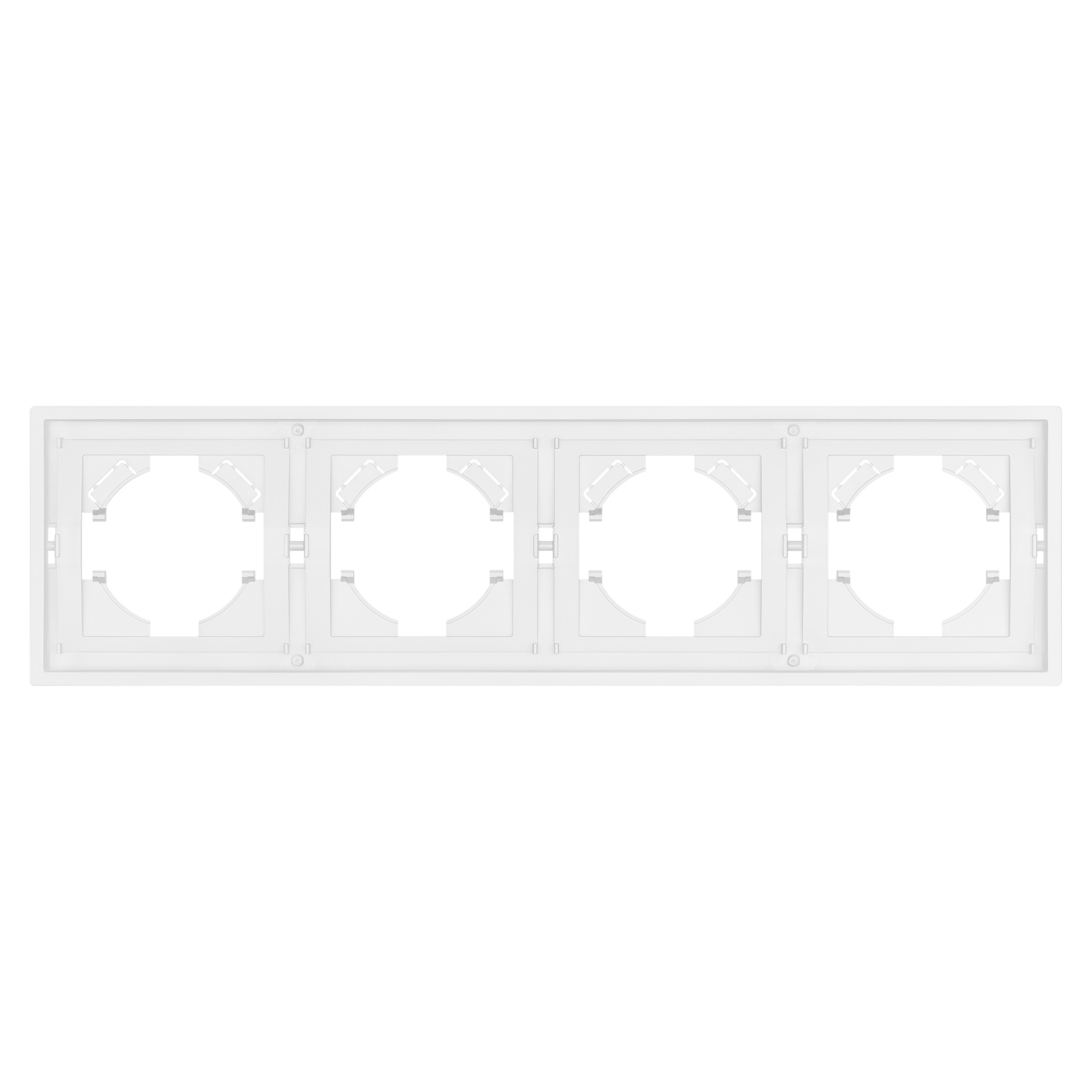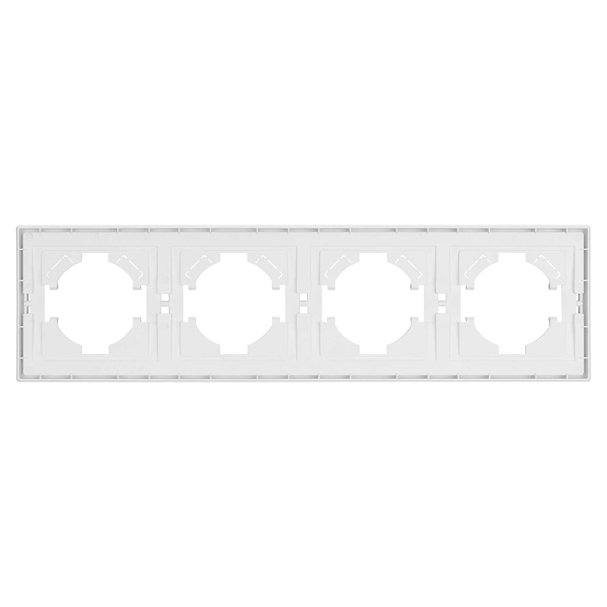 Рамка пластиковая на 4 поста, под встраиваемый механизм. Цвет - белый. Среднего уровня герметичности IP20. Ориентация монтажа горизонтальная. Габаритные размеры: длина 294 мм, ширина 80 мм, высота 9 мм. Гарантийный срок 12 мес.