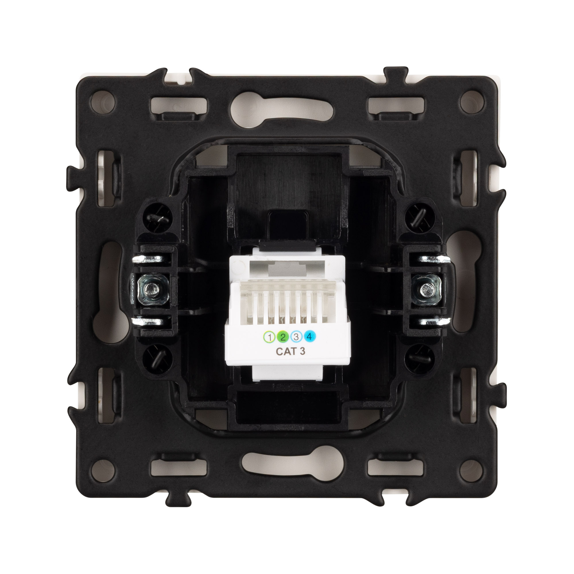 Строгие геометрические линии гармонично сочетаются с функциональностью продуманных механизмов, создавая идеальное решение для дизайн-проектов, где важны как эстетика, так и практичность. Механизм телефонной розетки совместим с рамками серии NOBE, создает утонченный минималистичный вид. Скрытый тип монтажа позволяет гармонично встроить в интерьер любого современного дизайн-проекта. Видимая часть механизма выполнена из высококачественного пластика цвета белый кварц и имеет Soft-Touch покрытие, что придает изделию приятные тактильные ощущения и стильный внешний вид. Выходной порт RJ-11 (Female) формата 6P4C соответствует категории 3 (Cat.3). Самозакрывающаяся крышка защищает выходной порт от повреждения и загрязнения внешних контактов разъема. Контактная часть выполнена по технологии IPC (изоляционно–пробивающего контакта) с нанесением цветной маркировки схемы разводки на корпус, позволяя быстро и легко подсоединить механизм компьютерной розетки к большинству многожильных кабелей типа UTP (неэкранированные). А усиленные распорные лапки двойного захвата надежно фиксируют механизм в установочном подрозетнике круглого сечения диаметром 60мм. Суппорт окрашен в черный матовый цвет под основу механизма и выполнен из металла толщиной 1,5мм, что обеспечивает безопасность и уверенность в установке. На каждой стороне суппорта размещены фиксирующие элементы, позволяющие комбинировать механизмы в системы до 5шт как горизонтально, так и вертикально.