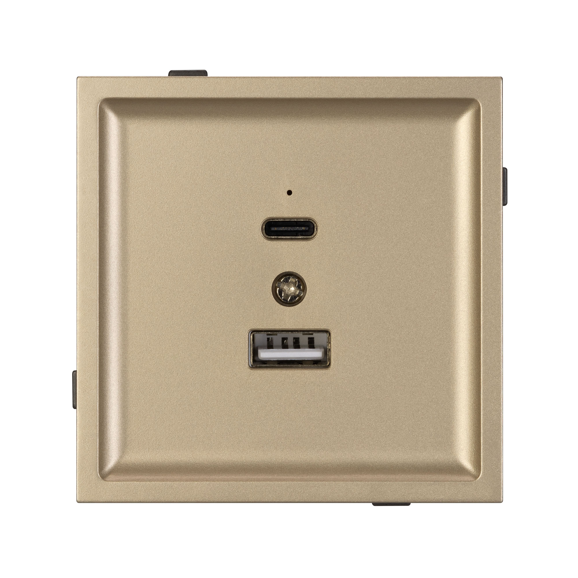 Механизм розетки с быстрой USB зарядкой, совместимый с рамками серии TENDO, создает утонченный минималистичный вид. Наличие USB Type A и Type C портов позволяет существенно сократить количество используемых розеточных постов, сохраняя единую стилистику интерьера современного дизайн-проекта. Оба разъема поддерживают протокол быстрой зарядки Quick Charge QC 3.0, помимо этого для разъема Type C доступен протокол Power Delivery*.