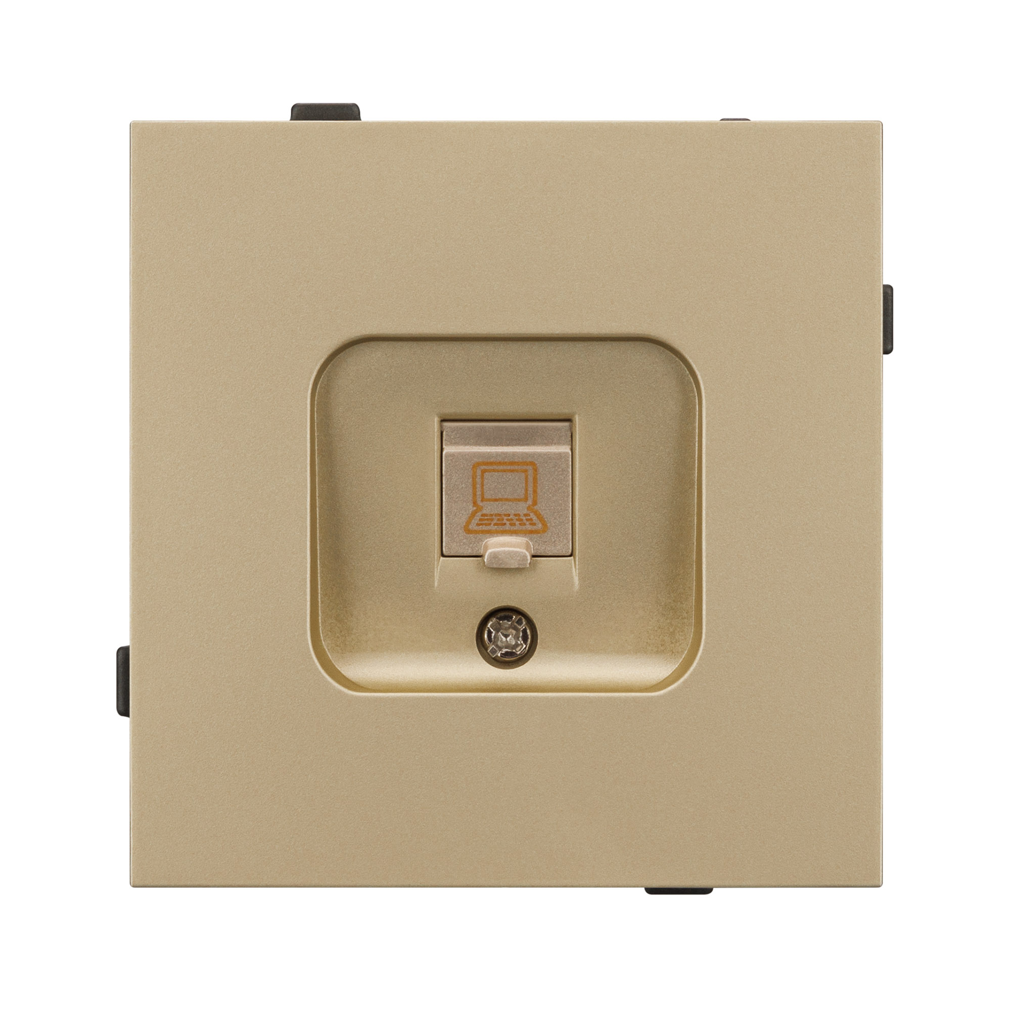 Механизм компьютерной розетки совместим с рамками серии TENDO, создает утонченный минималистичный вид. Скрытый тип монтажа позволяет гармонично встроить в интерьер любого современного дизайн-проекта. Видимая часть механизма выполнена из высококачественного пластика золотого цвета и имеет Soft-Touch покрытие, что придает изделию приятные тактильные ощущения и стильный внешний вид. Выходной порт RJ-45 (Female) формата 8P8C соответствует категории 6 (Cat.6), что поддерживает высокоскоростные соединения до 10 Гбит/с на расстоянии до 55 метров. Откидная крышка защищает выходной порт от повреждения и загрязнения внешних контактов разъема. Контактная часть выполнена по технологии IPC (изоляционно–пробивающего контакта) с нанесением цветной маркировки схемы разводки на корпус, позволяя быстро и легко подсоединить механизм компьютерной розетки к большинству многожильных кабелей типа UTP (неэкранированные). Металлический суппорт окрашен порошковой краской в несколько слоев и выполнен из металла толщиной 1,5мм, что обеспечивает безопасность и уверенность в установке. А усиленные распорные (монтажные) лапки надежно фиксируют механизм в стандартном установочном подрозетнике. На каждой стороне суппорта размещены фиксирующие элементы, позволяющие комбинировать механизмы в системы до 5шт как горизонтально, так и вертикально, под соответствующую рамку.
