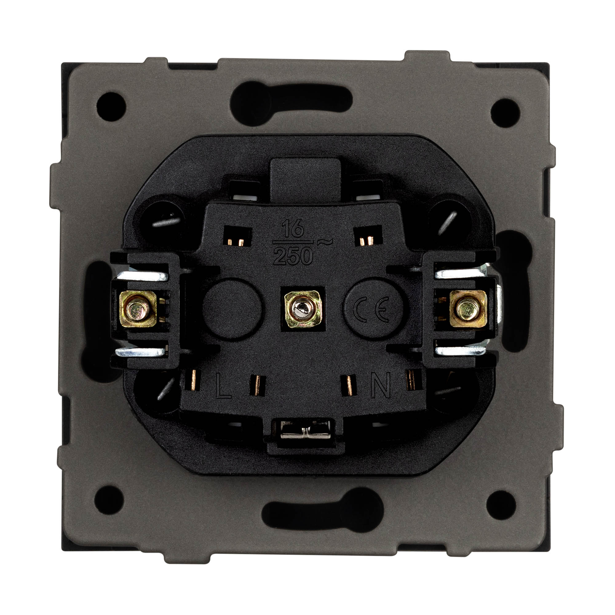 Механизм розетки с заземление совместим с рамками серии TENDO, создает утонченный минималистичный вид. Скрытый тип монтажа позволяет гармонично встроить в интерьер любого современного дизайн-проекта. Видимая часть механизма выполнена из высококачественного пластика черного цвета и имеет покрытие Soft-Touch. Розетка оснащена защитными шторками, которые защищают механизм устройства от повреждений и загрязнений, а также обеспечивают безопасное использование для каждого пользователя. Металлический суппорт окрашен порошковой краской в несколько слоев и выполнен из металла толщиной 1,5мм, что обеспечивает безопасность и уверенность в установке. А усиленные распорные (монтажные) лапки надежно фиксируют механизм в стандартном установочном подрозетнике. На каждой стороне суппорта размещены фиксирующие элементы, позволяющие комбинировать механизмы в системы до 5шт как горизонтально, так и вертикально, под соответствующую рамку.