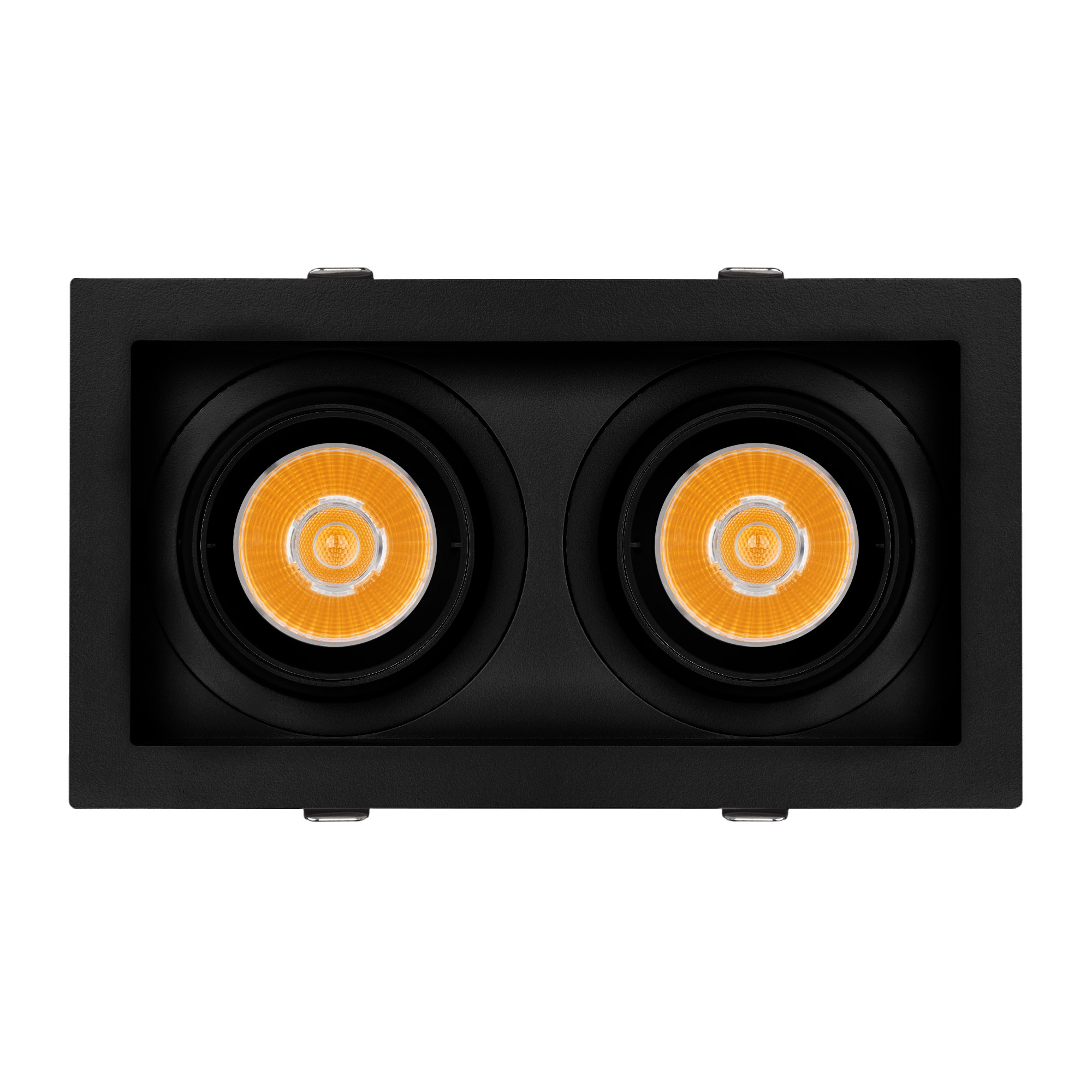 Поставка под заказ от 30 шт. Встраиваемый карданный светильник. Мощность 2х20 Вт, св. поток 4134 лм, 103 лм/Вт, тёплый 3000 K, CRI>92, угол 20°, напряжение питания 230 В. Чёрный корпус из алюминия, белая вставка, степень защиты IP20. Размер: длина 210 мм, ширина 117 мм, высота 105 мм. Монтаж встраиваемый, установочное отверстие: длина 190 мм, ширина 95 мм. Драйвер 24-42 В, 500 мА, пульсация <2%.