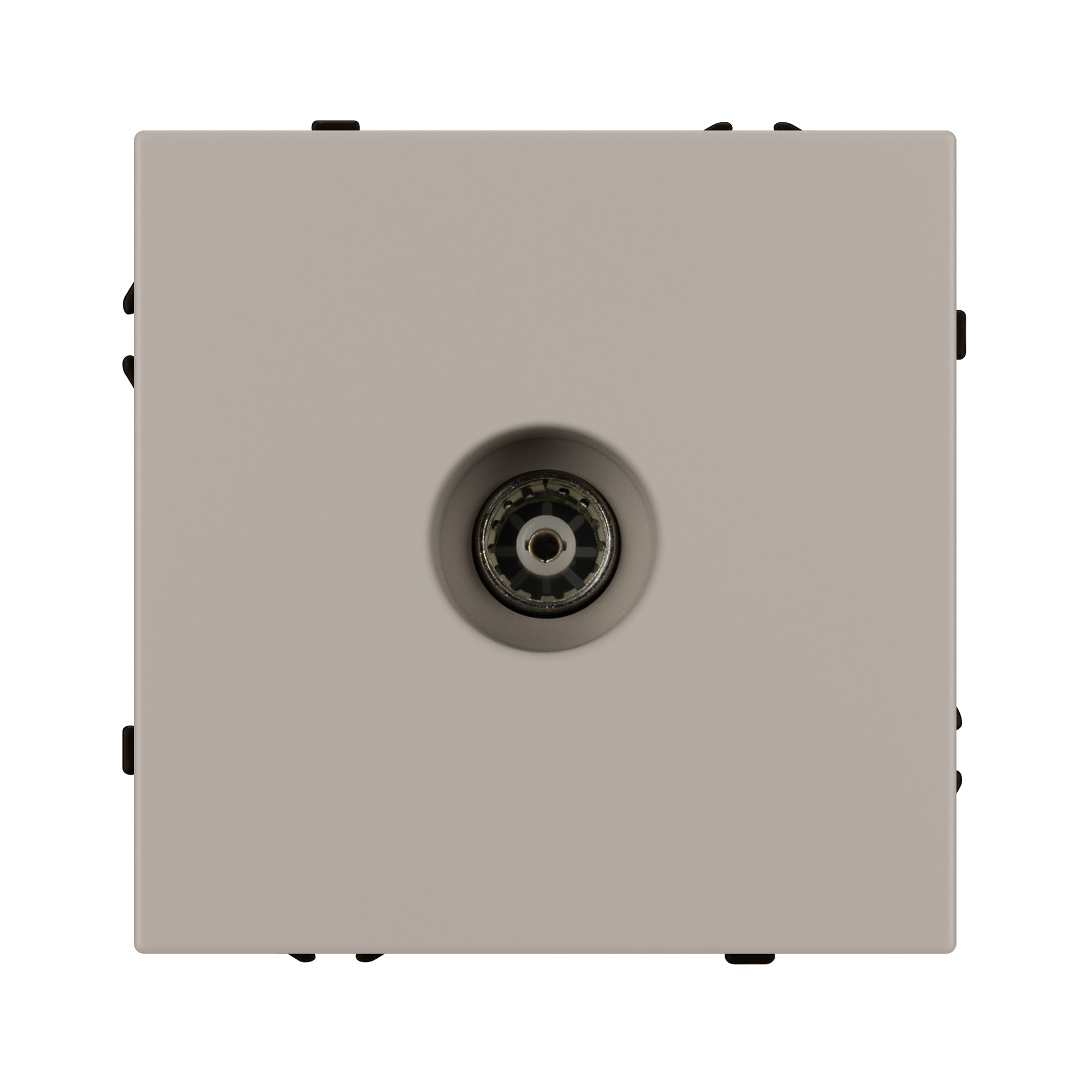 Строгие геометрические линии гармонично сочетаются с функциональностью продуманных механизмов, создавая идеальное решение для дизайн-проектов, где важны как эстетика, так и практичность. Механизм ТВ-розетки совместим с рамками серии NOBE, создает утонченный минималистичный вид. Скрытый тип монтажа позволяет гармонично встроить в интерьер любого современного дизайн-проекта. Видимая часть выполнена из высококачественного пластика цвета кашемир и имеет Soft-Touch покрытие, что придает изделию приятные тактильные ощущения и стильный внешний вид. Механизм ТВ-розетки предназначена для подключения кабельного телевидения, путем подсоединения коаксиального кабеля к винтовому зажиму. Усиленные распорные лапки двойного захвата надежно фиксируют устройство в установочном подрозетнике круглого сечения диаметром 60мм. Суппорт окрашен в черный матовый цвет и выполнен из металла толщиной 1,5мм, что обеспечивает безопасность и уверенность в установке. На каждой стороне суппорта размещены фиксирующие элементы, позволяющие комбинировать механизмы в системы до 5шт как горизонтально, так и вертикально.