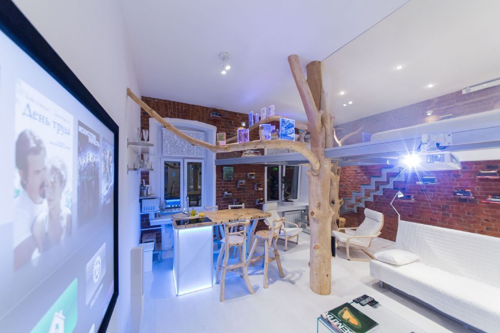 В данном проекте было широко использовано светодиодное освещение и подсветка на основе оборудования arlight®. На ветвях деревьев расположились плексигласовые ниши для книг, подсвеченные светодиодной лентой arlight® разных цветов.